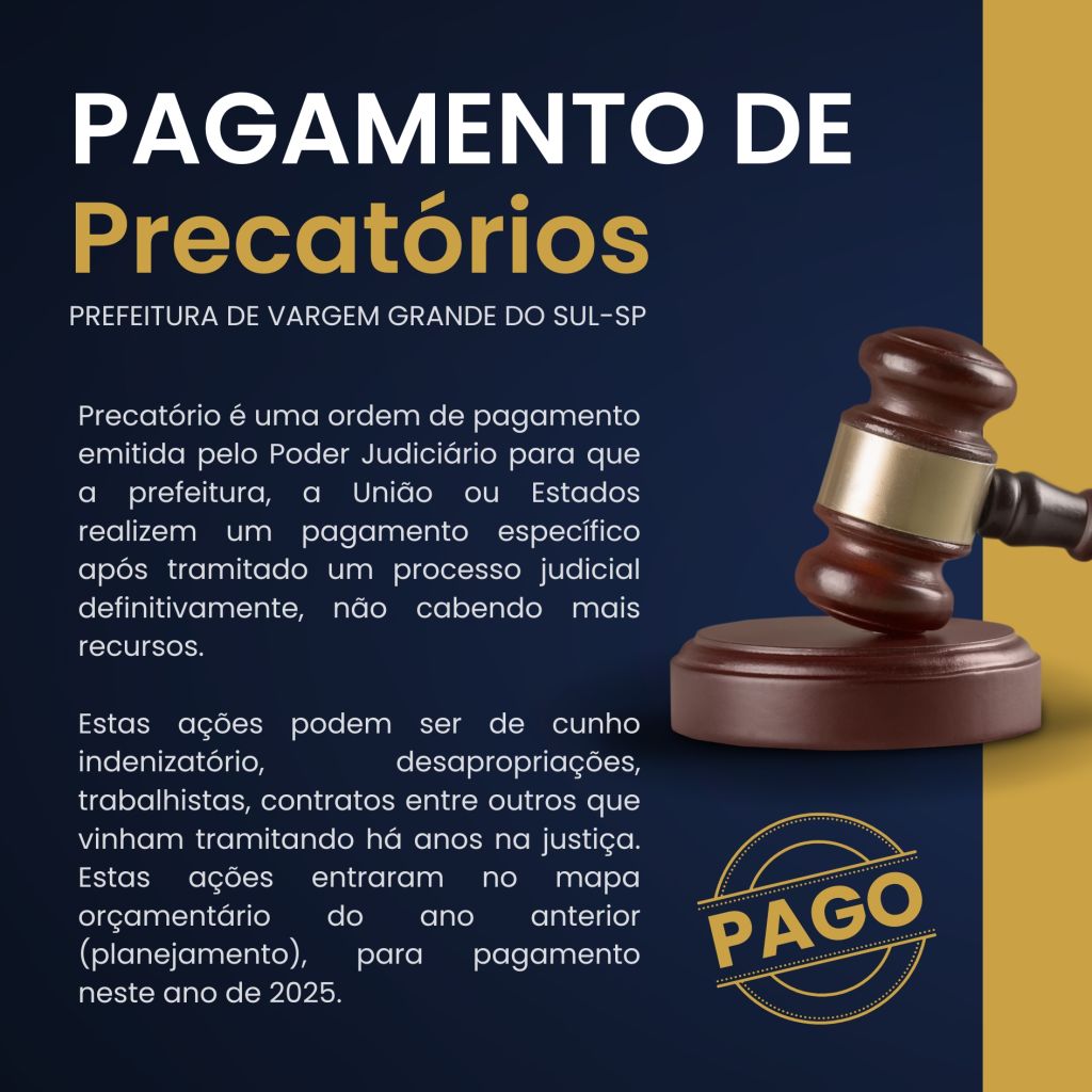 Estas ações podem ser de cunho indenizatório, desapropriações, trabalhistas, contratos entre outros que vinham tramitando há anos na justiça. Estas ações entraram no mapa orçamentário do ano anterior (planejamento), para pagamento neste ano de 2025.