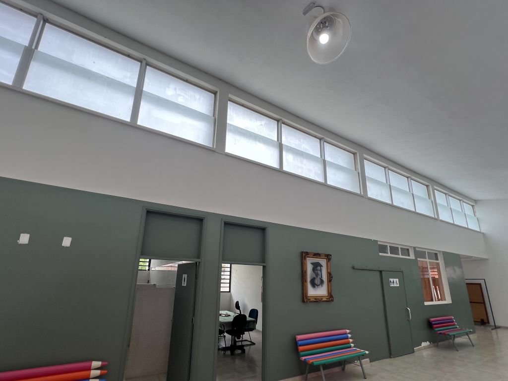 A Creche Municipal “Evangeline Ciacco de Oliveira – D. Evange”, situada no Jardim Ferri, recebeu nova estrutura de vidro na parte superior do prédio.